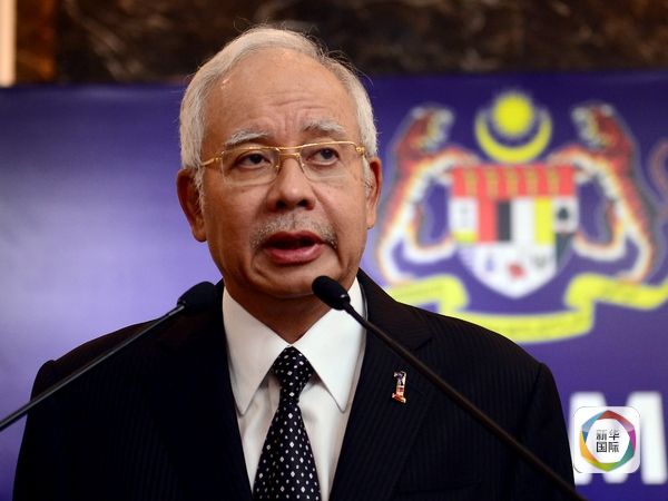 馬來西亞總理納吉布在新聞會(huì)上發(fā)表講話。(新華社發(fā))