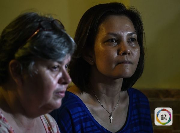 MH370乘務(wù)長帕特里克·戈梅斯的妻子雅克基塔·岡薩雷斯(左)。(圖片來源:新華/法新)