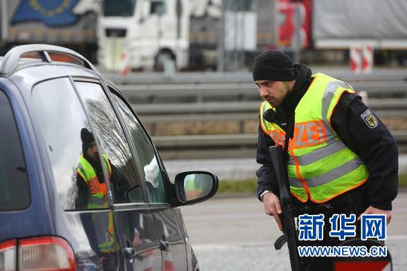 在比利時東部靠近德國亞琛的邊界,德國警方設置了路障,檢查過往車輛。記者在高速公路檢查站看到,兩名德國特警把守兩邊,所有車輛逐一通過。需要進一步檢查的車輛按指揮進入特定區域,德國警方要求被檢車輛司機出示證件,并對汽車內部進行仔細翻查。檢查站中停靠了10多輛各型警車,值勤警察荷槍實彈,檢查站旁還有一架警方直升機。
