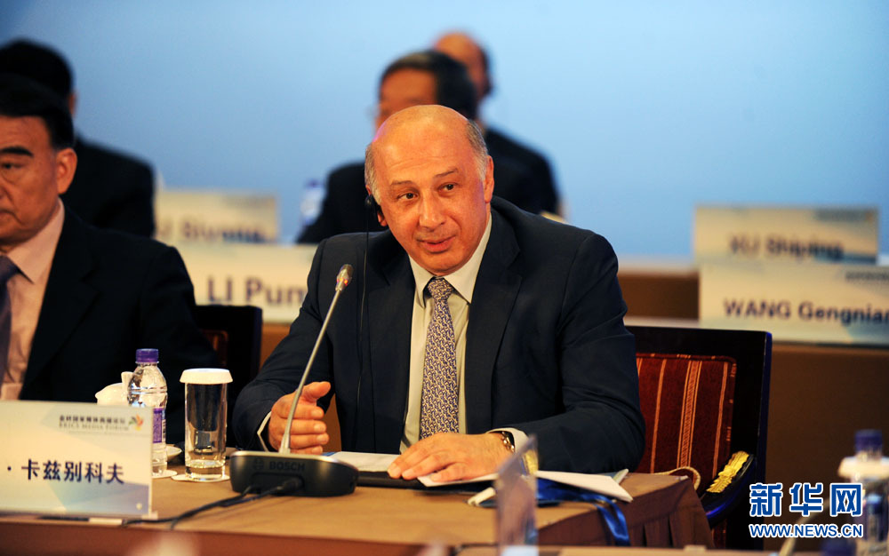 金磚國家媒體高端論壇開幕式6月8日在北京舉行。圖為金磚國家新開發銀行副行長卡茲別科夫致辭。 新華網 孫韜 攝