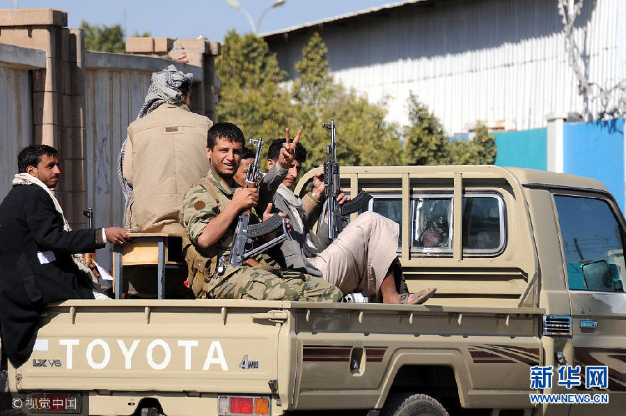 12月20日,也門薩那,胡塞武裝士兵參加部落集會,慶祝向沙特發射彈道導彈。當地時間19日下午,也門胡塞武裝再次向沙特阿拉伯首都利雅得發射一枚彈道導彈,再次被被沙特防空部隊攔截,沒有造成人員傷亡。(圖片來源:視覺中國)