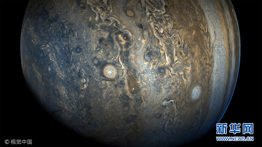12月21日訊(具體拍攝時(shí)間不詳),這一系列由木星探測(cè)器“朱諾”號(hào)帶來的高清圖,錯(cuò)綜復(fù)雜的星云結(jié)構(gòu)看上去就像印象派大師的畫作。(圖片來源:視覺中國(guó))