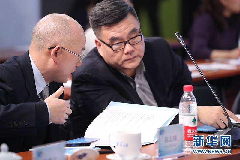 12月26日,新華網(wǎng)第八屆“縱論天下”國(guó)際問(wèn)題研討會(huì)在北京舉行。外交學(xué)院教授、《外交評(píng)論》執(zhí)行主編陳志瑞(左)與中國(guó)國(guó)際問(wèn)題研究院歐洲研究所所長(zhǎng)崔洪建(右)在交流。新華網(wǎng) 郭小天 攝