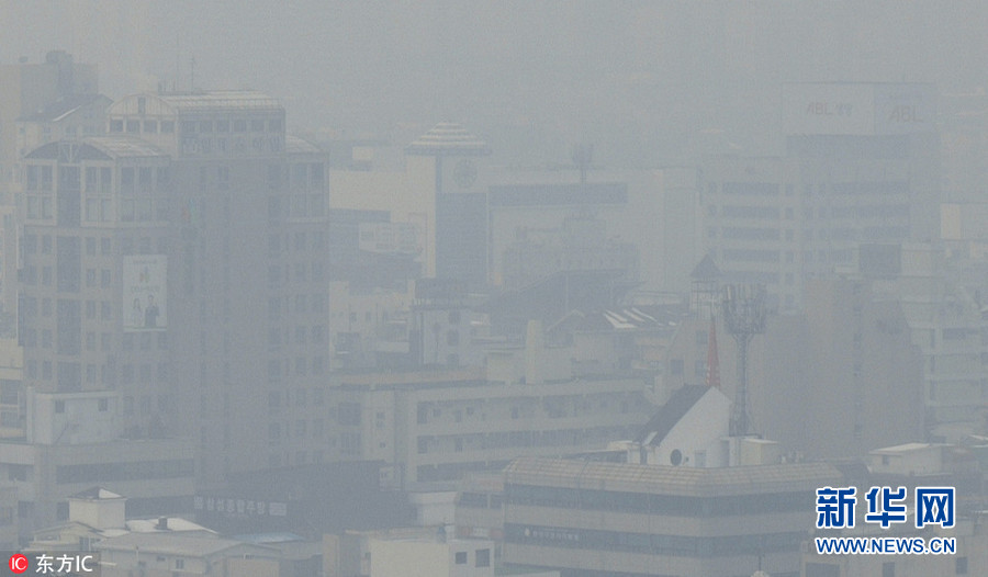 韓國(guó)多地出現(xiàn)重霧霾天氣 灰蒙一片能見(jiàn)度極低