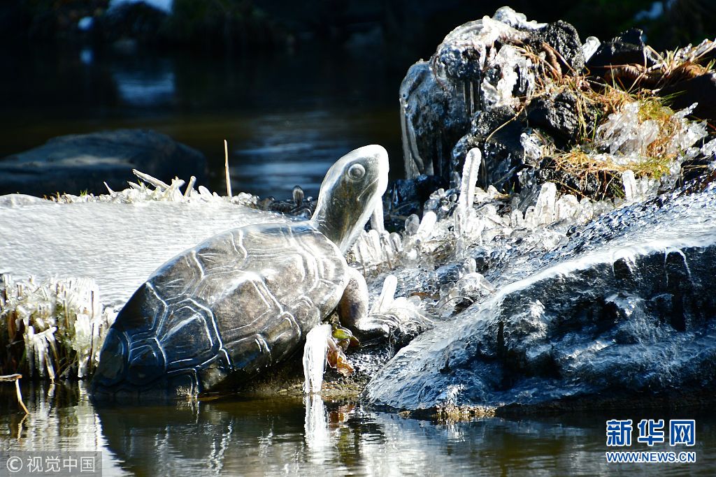 當地時間2018年1月27日,東京,東京都心已經連續6日被氣象廳認定為寒冷“冬日”(當天最低氣溫為零下),這是1984年2月以來,時隔34年的寒冷天氣。1月27日中午,在東京市中心的日比谷公園,殘雪依舊,湖面結冰。(圖片來源:視覺中國)