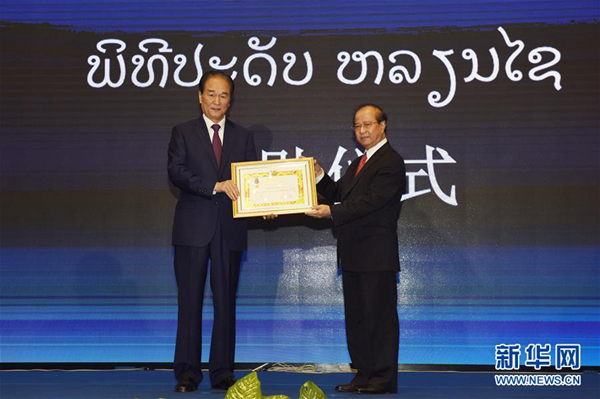 開幕式上,老撾政府向新華社及蔡名照分別授予自由勛章,以表彰新華社長期以來為加強老中合作關系以及為老撾國家通訊社發(fā)展所作的積極貢獻。