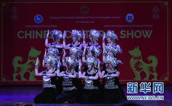 2月9日,在印度首都新德里,2018“歡樂春節”活動演出現場,中國演員在表演舞蹈。新華網發(張迺杰攝)