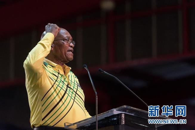 2月14日,南非總統雅各布·祖馬發表全國講話時宣布辭職。這是祖馬在南非約翰內斯堡舉行的非洲人國民大會(非國大)第54屆全國代表大會上發言的資料照片(2017年12月16日攝)。新華社發(戴維·奈克爾攝)