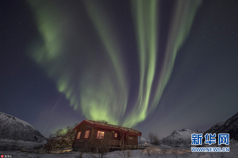 2月19日,英國攝影師拍攝下一組絕美的北極光照片。Paul Goldstein是一位來自英國溫布爾頓的導(dǎo)游,他領(lǐng)著18名“極光獵人”組成的團隊在北極圈內(nèi)捕捉北極光,然后在挪威冰封的峽灣地區(qū)拍攝下這些令人驚嘆照片。畫面中,美麗的北極光如一條條綠色的條紋帶在夜空舞動,美得令人窒息。(圖片來源:東方IC)