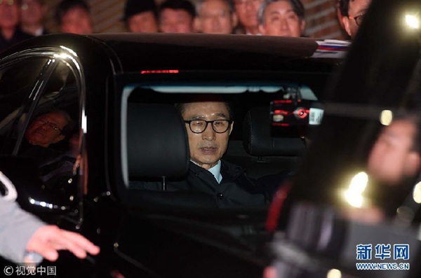 資料圖:韓國首爾中央地方法院22日晚對前總統李明博簽發逮捕令。新華網發