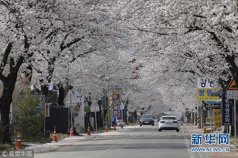 3月30日,韓國河?xùn)|郡,當(dāng)?shù)貦鸦ㄊ㈤_,吸引游人觀賞。(圖片來源:視覺中國)