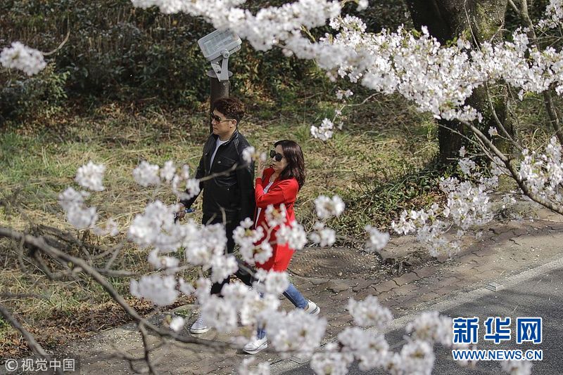 3月30日,韓國河東郡,當地櫻花盛開,吸引游人觀賞。(圖片來源:視覺中國)