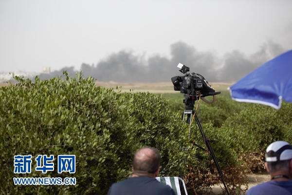 正午的驕陽(yáng)烤得人大汗淋漓,被大風(fēng)卷起的黃沙一個(gè)勁地往眼睛里鉆。雖然記者的眼睛經(jīng)常被汗水和沙子蹂躪地睜不開(kāi),但是這并不妨礙記者用相機(jī)和攝像機(jī)記錄下加沙地帶那一頭發(fā)生的一幕幕。抗議的巴勒斯坦人燃燒輪胎所產(chǎn)生的濃煙,遮住了大片天空,刺鼻的焦味隨風(fēng)飄散。