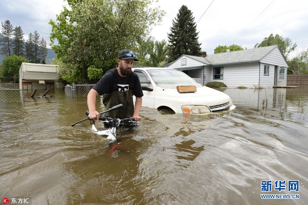 5月17日,加拿大不列顛哥倫比亞省Grand Forks,當(dāng)?shù)卦夂樗u擊,房屋、車(chē)輛浸泡水中。(圖片來(lái)源:東方IC)