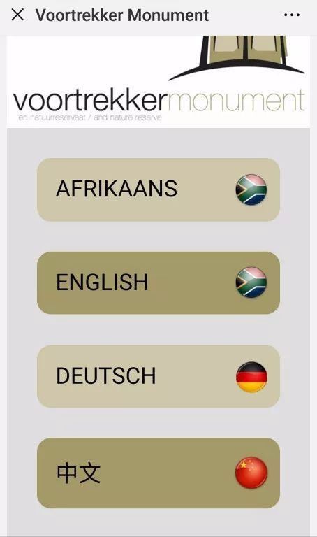 掃描二維碼后可以看到關于每幅浮雕的詳細說明,共有四種語言供選擇:南非荷蘭語、英語、德語和漢語。