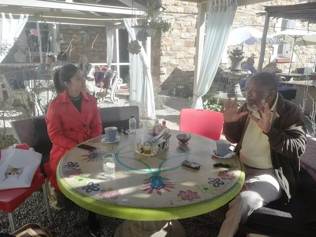 幾天的走訪過程中,比勒陀利亞市民對中國人的友好也給我們留下了深刻印象。走在街上,不時會有擦肩而過的當地人主動向我們打招呼,用中文說著“你好!”照片中偶遇的這位當地大叔叫Magano。沒想到這位大叔還是位時事通,和我們聊起中國、金磚國家的時候,他顯得興致勃勃,不時做著手掌交叉、一拍即合的手勢。