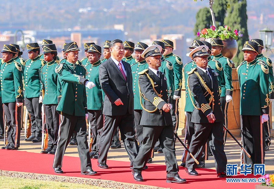 7月24日,國家主席習近平在比勒陀利亞同南非總統拉馬福薩舉行會談。會談前,拉馬福薩為習近平舉行隆重歡迎儀式。新華社記者謝環馳攝