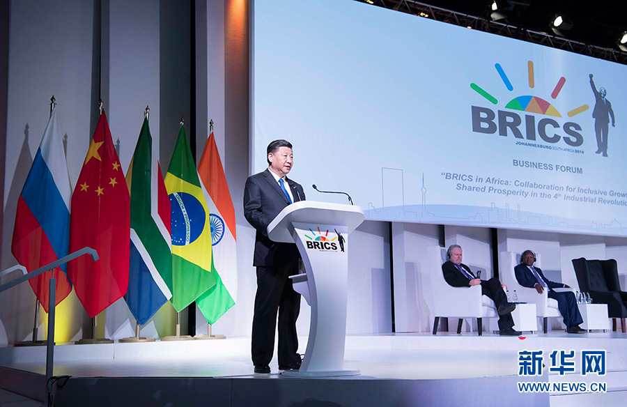 7月25日,國家主席習近平應邀出席在南非約翰內斯堡舉行的金磚國家工商論壇,并發表題為《順應時代潮流 實現共同發展》的重要講話。新華社記者李濤攝