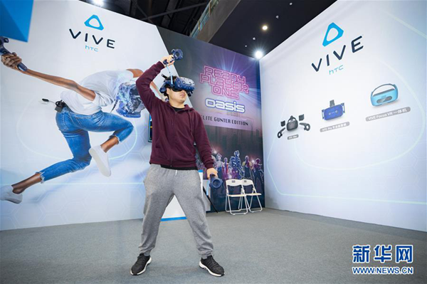 11月7日,參觀者在第五屆世界互聯(lián)網(wǎng)大會(huì)上體驗(yàn)虛擬現(xiàn)實(shí)技術(shù)。當(dāng)日,第五屆世界互聯(lián)網(wǎng)大會(huì)在浙江烏鎮(zhèn)開幕。 新華社記者 才揚(yáng) 攝