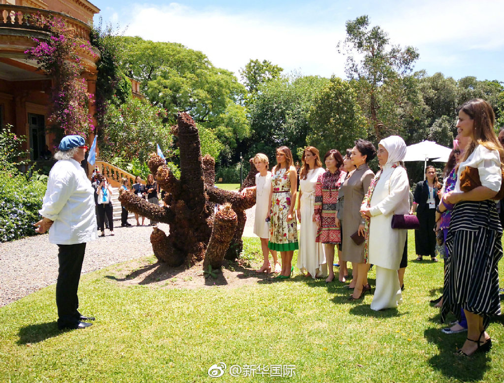 綠草如茵,落英繽紛。當地時間11月30日上午,應阿根廷總統馬克里夫人阿瓦達邀請,國家主席習近平夫人彭麗媛同出席二十國集團領導人第十三次峰會的部分國家領導人配偶來到阿根廷著名女作家奧坎波故居參觀。