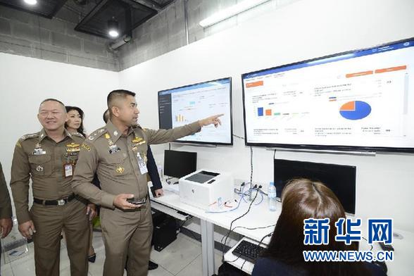 2月15日,泰國移民局局長素拉切(中)在曼谷素萬那普機場了解新版電子落地簽證使用者數據。 泰國移民局15日在素萬那普機場舉辦新版電子落地簽證系統正式上線儀式,以期進一步方便包括中國游客在內的外國游客。 新華社發(泰國移民局供圖)