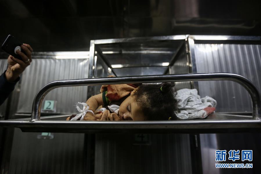 5月4日,在加沙城,一名幼兒在以軍轟炸中喪生。新華社發