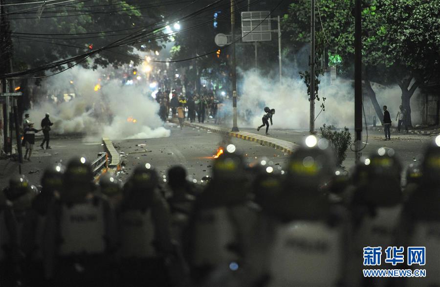 印尼國家警察總局發言人穆罕默德·伊克巴爾在當天舉行的新聞發布會上說,一些示威者破壞路障和隔離墻,用石塊、燃燒彈和煙花爆竹等攻擊警方,縱火焚燒汽車和建筑物。警方使用催淚彈、橡膠子彈驅散人群。
