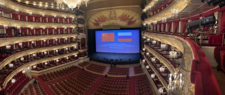 中俄建交70周年紀念大會開始前的莫斯科大劇院。新華社記者鄭曉奕攝