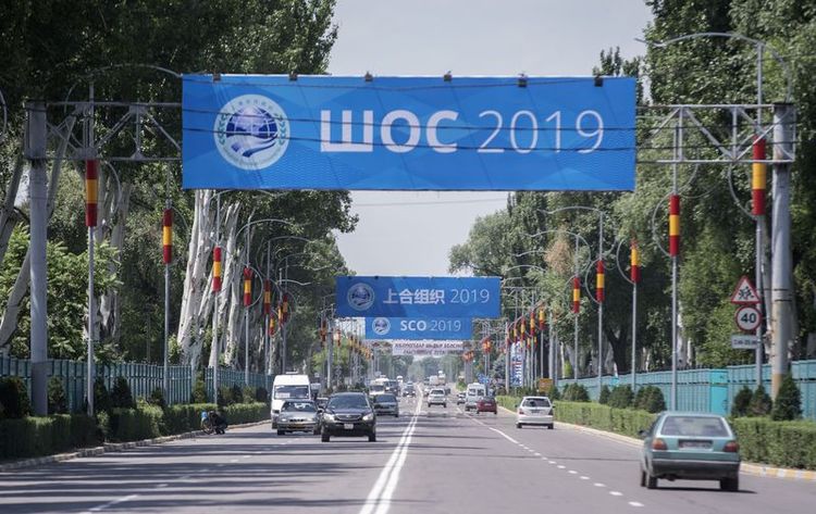 比什凱克瑪納斯國際機場開往市區(qū)的公路上,以多種文字標注的上合組織比什凱克峰會橫幅已經(jīng)掛起。(新華社記者 費茂華 攝)