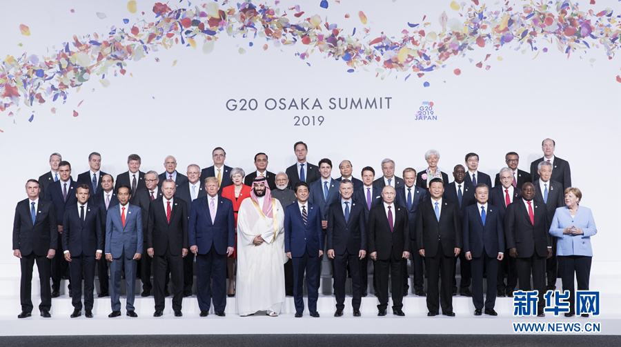 6月28日,二十國集團領(lǐng)導(dǎo)人第十四次峰會在日本大阪舉行。國家主席習(xí)近平出席并發(fā)表題為《攜手共進,合力打造高質(zhì)量世界經(jīng)濟》的重要講話。這是習(xí)近平同其他與會領(lǐng)導(dǎo)人合影。新華社記者 黃敬文 攝