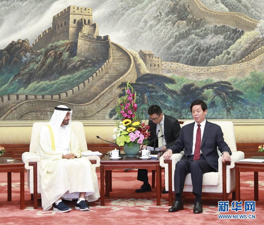 7月22日,全國人大常委會委員長栗戰(zhàn)書在北京人民大會堂會見阿聯(lián)酋阿布扎比王儲穆罕默德。新華社記者 龐興雷 攝