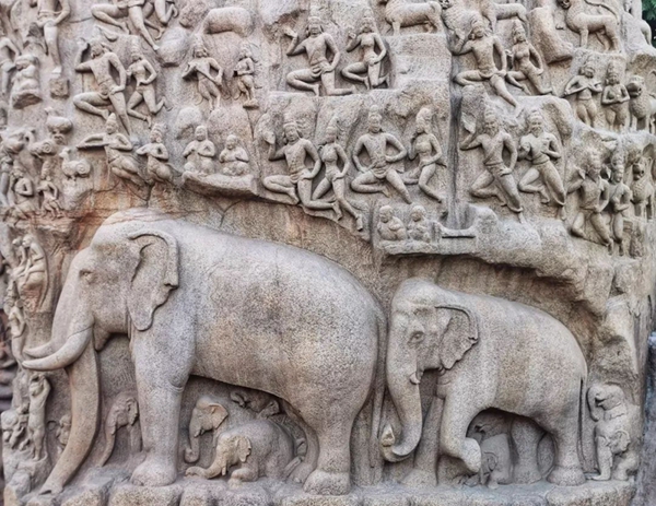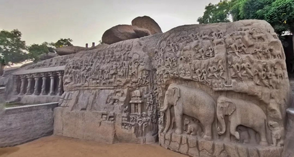 馬哈巴利普拉姆古寺廟建于公元7至8世紀(jì),由阿周那石雕、五戰(zhàn)車神廟、海岸神廟等古跡組成。