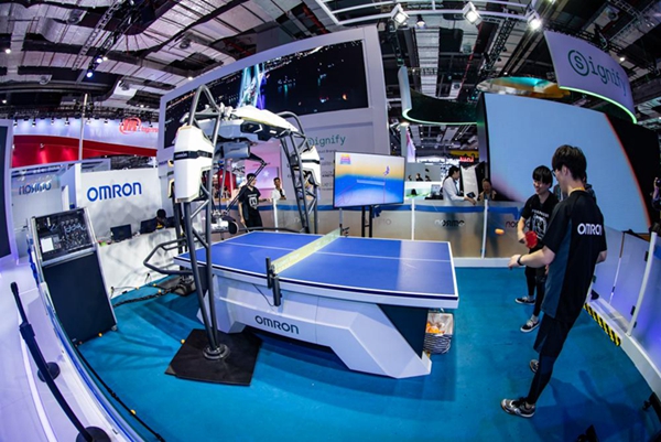 在裝備展區(qū),乒乓球機(jī)器人較受關(guān)注,不僅互動性強(qiáng),而且也昭示著人工智能的發(fā)展。新華網(wǎng)吳愷 攝