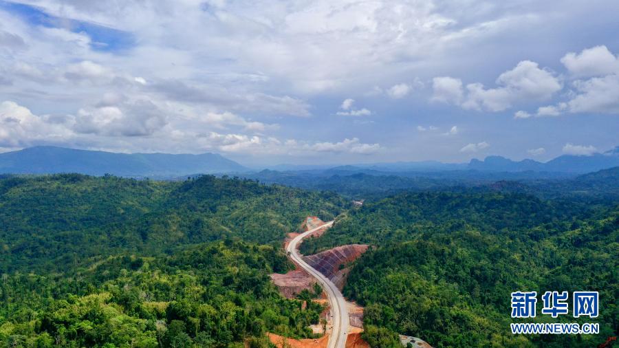 這是10月22日在老撾萬(wàn)象省航拍的建設(shè)中的萬(wàn)萬(wàn)高速公路。(無(wú)人機(jī)拍攝)新華社發(fā)(云南建投集團(tuán)供圖)