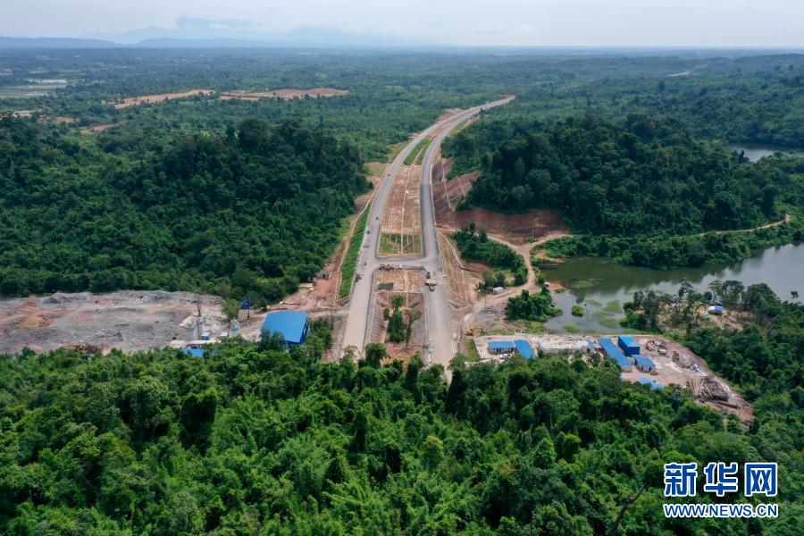 這是7月6日在老撾萬(wàn)象省航拍的建設(shè)中的萬(wàn)萬(wàn)高速公路。(無(wú)人機(jī)拍攝)新華社發(fā)(云南建投集團(tuán)供圖)