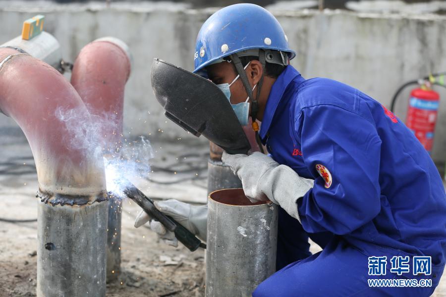 覺泰昂是正在接受項目組培訓(xùn)的當(dāng)?shù)毓と酥弧K麆倎眄椖拷M上班時僅是一名普通的安裝工,因為他對電焊感興趣,又掌握一些基本的焊接知識,項目組的師傅就開始教他做些簡單的焊接工作。教覺泰昂電焊技能的師傅田志章說:“提前幫他調(diào)好尺寸,接好焊點,每焊兩厘米左右就幫他檢查一下,一般的支架和管道焊接他已經(jīng)能做得很好。”