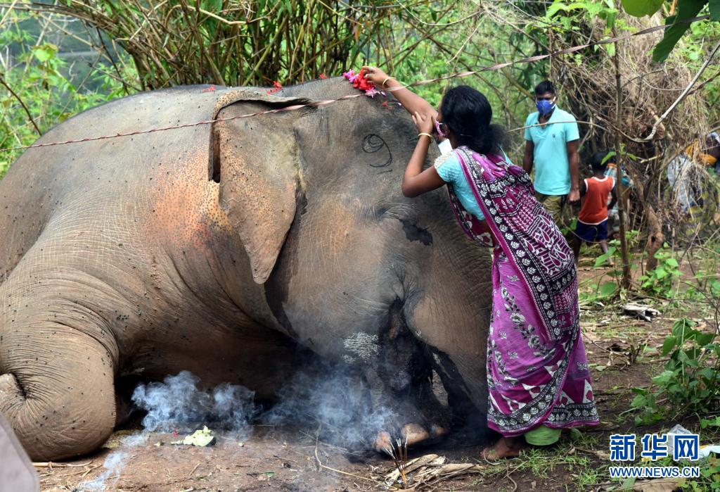 5月14日,一名女子在印度阿薩姆邦納加奧恩地區一頭死去的象旁禱告。